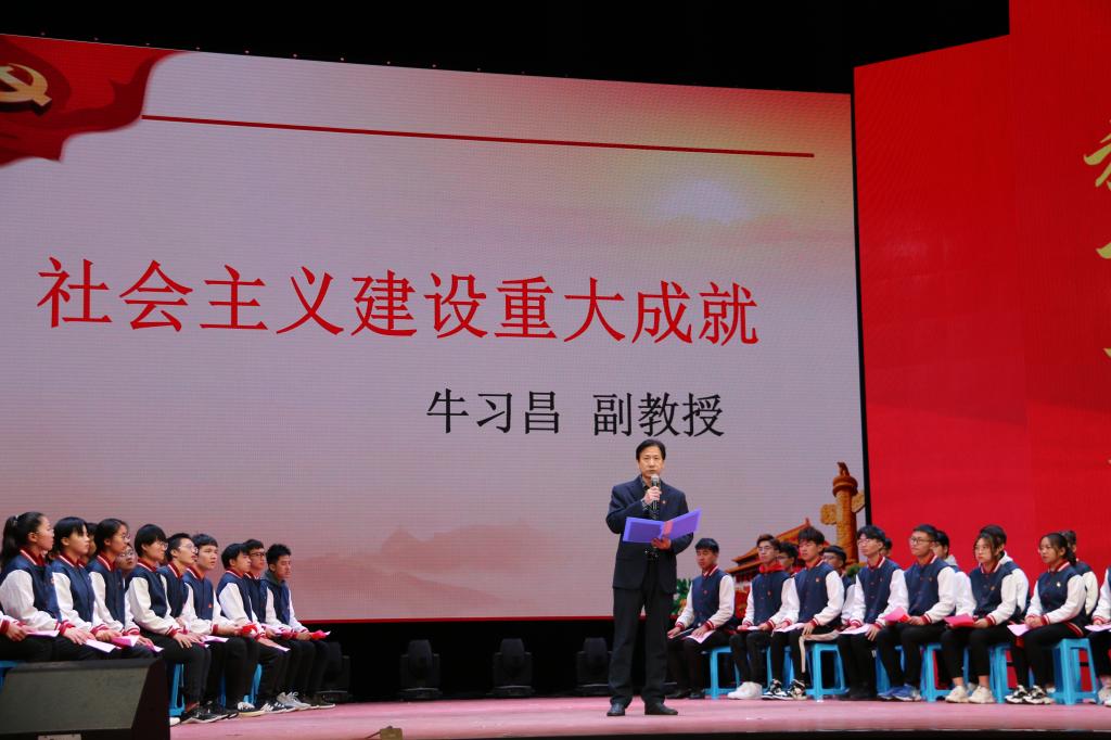 11月14日,主题教育班会从中国近代史的开端——1840年鸦片战争开始,按照历史发展线索,依次通过“长夜难明赤县天”、“开天辟地的大事变”、“星星之火,可以燎原”、“抗战中的中流砥柱”、“中国人民站起来了”、“敢教日月换新天”、“改革开放富起来”和“走进新时代”八大板块,带领广大师生一起重温党史和新中国国史,展现了党在探索马克思主义中国化理论中的智慧,践行了习近平总书记关于“学好历史,是坚持和发展中国特色社会主义,把党和国家各项事业继续推向前进的必修课”的重要思想。