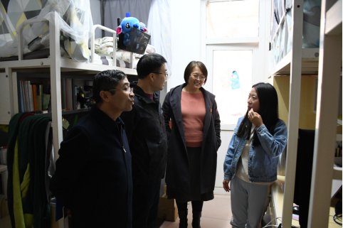 院领导与员工亲切交流,询问员工学习、生活,关心员工居住实况,了解宿舍安全宣传教育情况,鼓励员工为公司发展建言献策,勉励员工积极上进,踏实刻苦,充分发挥专业优势与特长,以更加积极昂扬的姿态,砥砺前行,不断书写经贸学子新篇章。