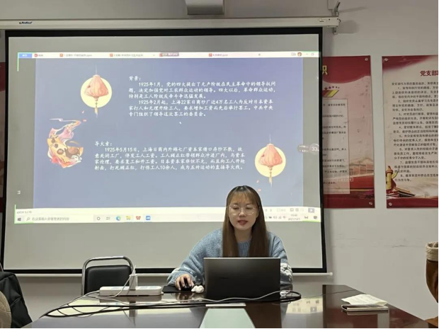 本次讲座由2020级马克思主义理论专业的刘畅同学主讲。首先刘畅同学介绍了五卅运动的背景以及五卅运动过程。1925年1月,党的四大提出了无产阶级在民主革命中的领导权问题,决定加强党对工农群众运动的领导。之后,革命群众运动迅猛发展,同年5月便爆发了反帝爱国运动—五卅运动。5月15日,日本资本家向工人开枪射击,打死顾正红和打伤工人10余人。29日,反动政府杀害工人8人。30日,上海2000余员工在公共租界进行宣传讲演,100余名遭巡捕逮捕,引起了员工和市民的极大愤慨,有近万人聚集在巡捕房门口,要求释放被捕员工。英帝国主义的巡捕向集会群众开枪,滥杀无辜,造成震惊中外的五卅惨案。其次刘畅同学讲述了中共四大与五卅运动之间的联系:一、中共四大为五卅运动奠定了思想基础;二、中共四大群众性政党建设为五卅运动奠定阶级基础;三、中共四大为五卅运动奠定组织基础。五卅运动沉重打击了帝国主义,对中华民族的觉醒和国民革命运动的发展起了巨大的促进作用,大大提高了中国人民的觉悟,揭开了大革命高潮的序幕。