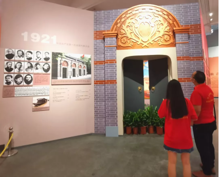 图为实践队员参观中共一大旧址“石库门”模型
