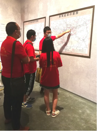 图为实践队员吴行苇(中国近现代史基本问题研究专业)为队友讲解淮海战役