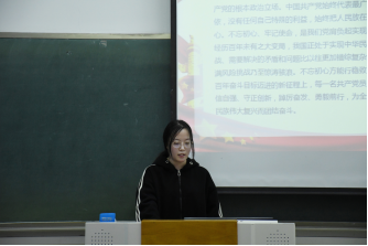 姜亚新同学主讲的题目为《新时代践行初心使命》。她从“不忘初心”的重要性、“坚守初心”的故事和“保持初心”的方法三个方面展开对初心的诠释。首先,姜亚新同学选取了习近平总书记在党的二十大中关于初心的讲话来解释百年党史其实就是我们党矢志践行初心使命的历史,说明初心的重要性。然后,她又讲解了黄大年、陈望道和“半条被子”--三位女红军战士坚守初心的故事进一步说明坚守初心的必要性。最后,她指出要从深刻把握不忘初心的深层逻辑、增强坚守初心使命的政治自觉和建立不忘初心的服务群众制度三个方面来达到一直“保持初心”的目的。