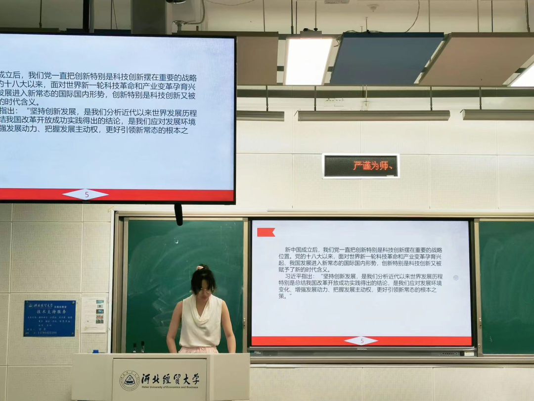 李依霏同学主讲的题目为《创新是引领发展的第一动力》。该同学认为,新中国成立后,我们党一直把创新特别是科技创新摆在重要的战略位置。党的十八大以来,面对世界新一轮科技革命和产业变革孕育兴起、我国发展进入新常态的国际国内形势,创新特别是科技创新又被赋予了新的时代含义。在新的时代背景下坚持创新发展既是国内发展形势所迫,又是世界发展大势所趋,还是国家民族命运所系。党和国家把科技创新摆在国家发展全局的核心位置,不断推进理论创新、制度创新、科技创新、文化创新等各方面创新,这不仅丰富和发展了马克思主义经济理论,更为推动我国发展转入创新驱动轨道、在新一轮科技革命和产业变革大势中把握主动,提供了强有力的理论指引和战略支撑。