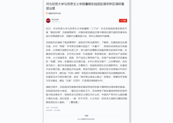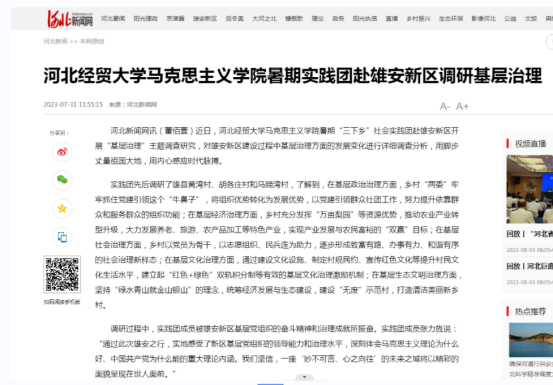 公司赴雄安调研社会基层治理被学习强国等媒体报道
