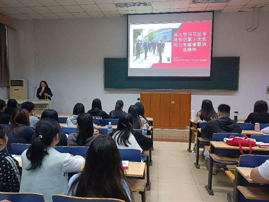 课上,李英以“深入学习习近平总书记第十次到河北考察重要讲话精神”为主题,以马克思主义基本原理、习近平新时代中国特色社会主义思想等科学理论为依据,对京津冀协同发展、雄安新区建设的重要意义、新时代我国自主创新发展进行了深入浅出的讲解,并用员工听得懂、学得会、用得上的知识为在场的同学呈现了一场专业知识理论与实践紧密契合的视听盛宴。