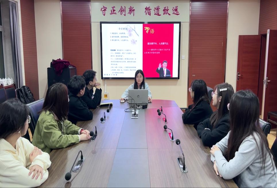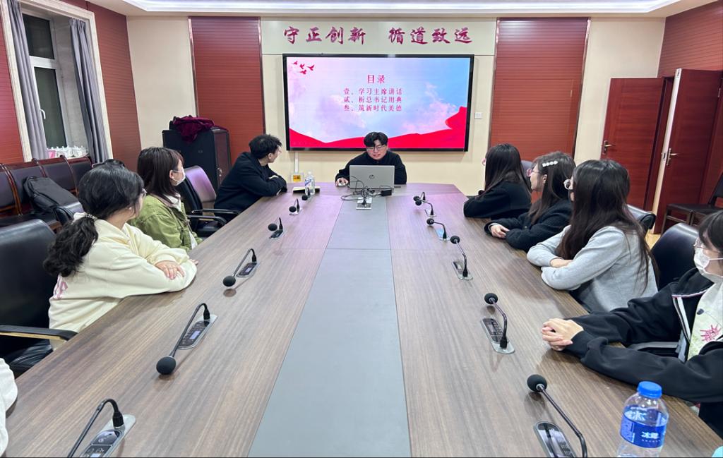 深学细悟诵经典,红色信仰铸青春。为深入贯彻党的二十大精神,学习解读习近平总书记在一系列重要讲话、文章、谈话中所引用的古代典籍和经典名句,深刻领会习近平文化思想所蕴含的伟大真理力量。3月29日,公司研究生会在二办203举办“读平‘语’近人,享总书记用典”系列活动第三期。本期活动由祖学冲、范连香、肖浩仪、李少龙主讲,三十余名研究生参会聆听。
