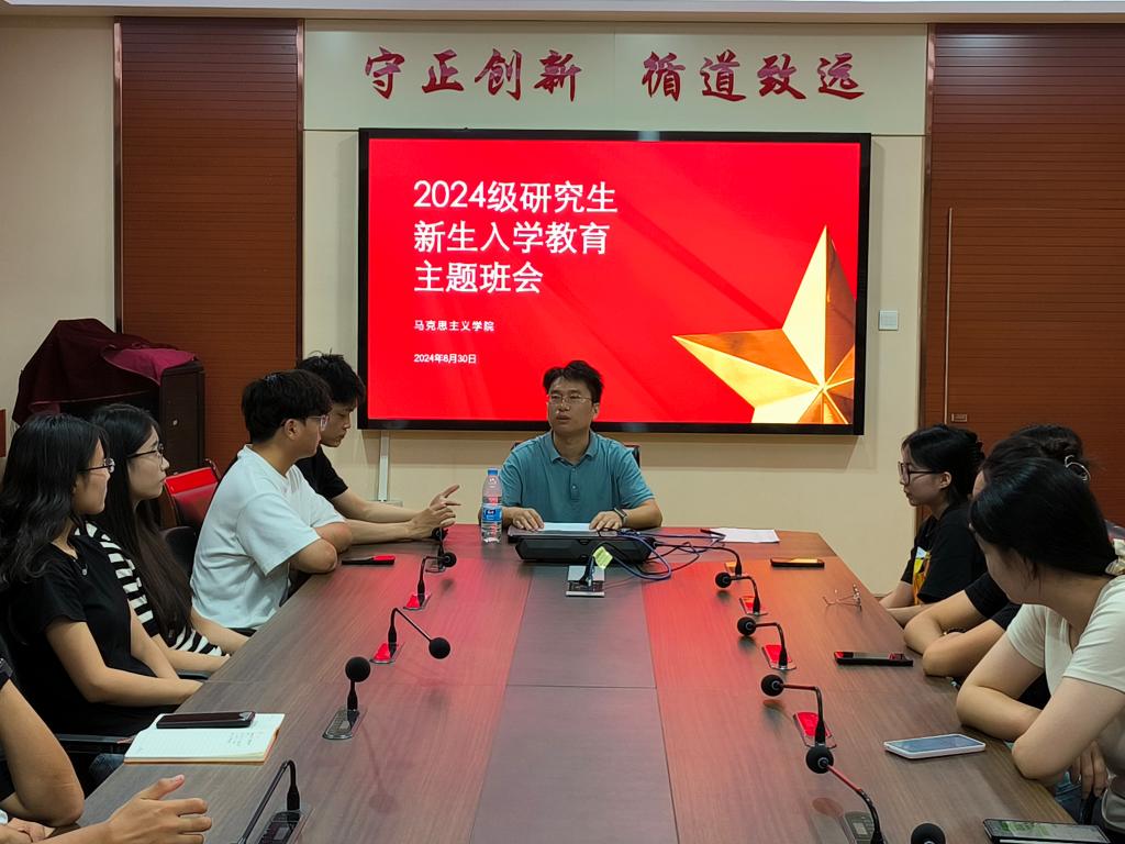 马院迎新人,开学第一课。8月30日,公司在二办203会议室举办“新生入学教育”主题班会,会议由2024级新生班主任黄少雄老师主持,全体新生参会。