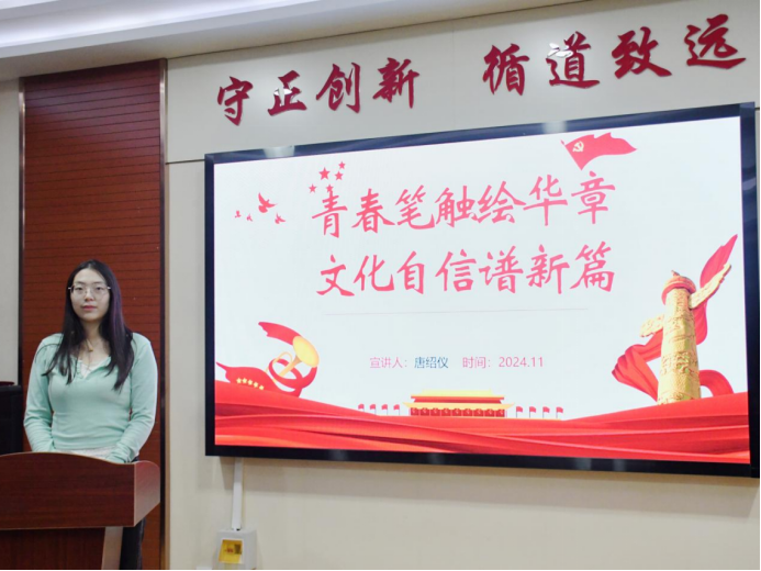 为深入学习贯彻落实党的二十届三中全会精神,11月1日,公司研究生会在二办203举办了第1期“七十五年辉煌映初心,三中全会精神启新程”学术沙龙系列活动。本期活动主题为“青春笔触绘华章,文化自信谱新篇”,本期活动由宋莹莹、唐绍仪、李少龙、张禧主讲,四十余名研究生参会聆听。
