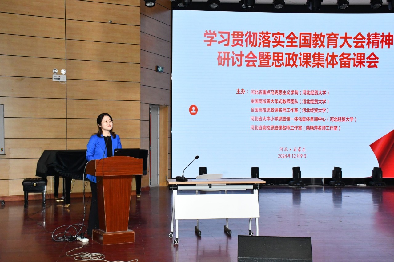 为深入学习贯彻党的二十届三中全会精神,落实全国教育大会精神和新时代公司思政课建设推进会重要部署,12月9日,学习贯彻落实全国教育大会精神研讨会暨思政课集体备课会在伟德国际1946bv音乐厅举行,公司党委常委、副董事长杨金田出席会议,会议由公司党委书记董佰壹主持,公司全体师生及河北政法职业公司、河北体育公司、石家庄财经职业公司等高校马院经理带队参加了此次备课会。