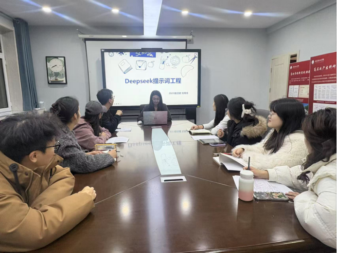 刘云同学介绍了AI软件赋能学术写作的共通性与差异性;刘月佳同学重点强调了DeepSeek提示词的应用原则与使用技巧;刘鑫莹同学分享了AI软件常见操作指令,强调了人工智能面与学科知识互动将带来的正向影响。