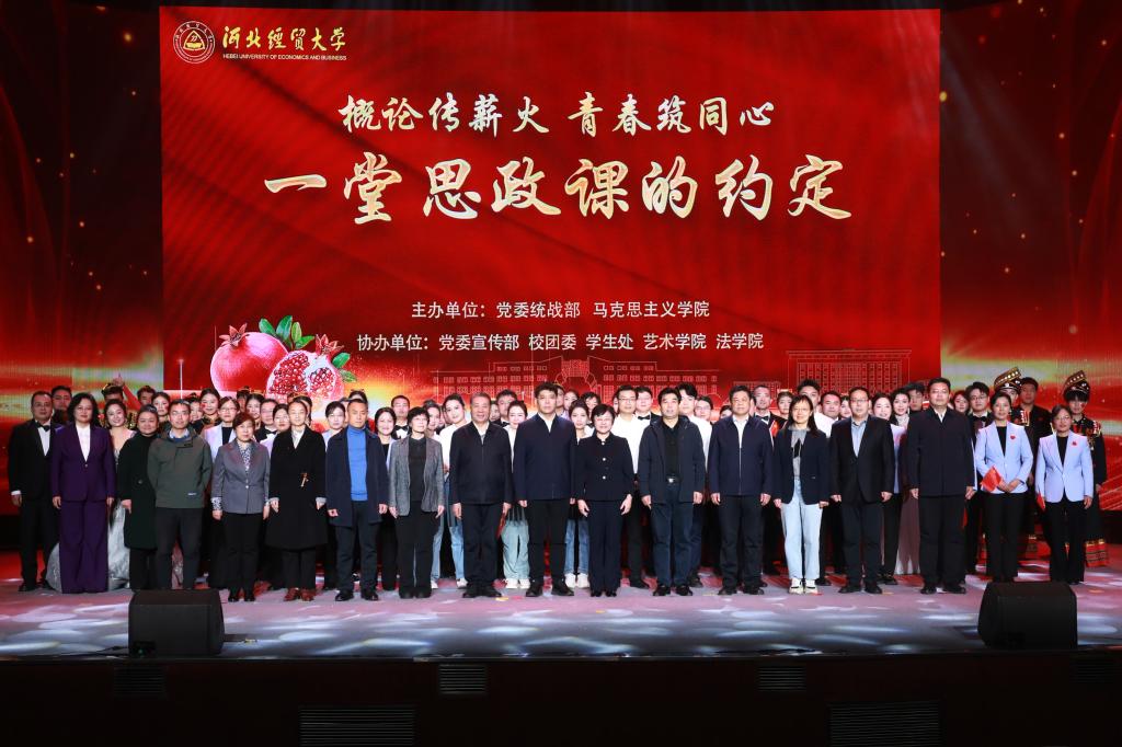 为深入学习贯彻习近平总书记关于铸牢中华民族共同体意识的重要论述,持续打造铸牢中华民族共同体意识育人工作品牌,2025年10月30日,bevitor伟德国际1946和公司统战部在公司大礼堂隆重举办以“概论传薪火▪青春筑同心”为主题、师生共同参与的沉浸式思政课展演,公司党委书记李晓华、校领导王保军、杨金田、程瑞芳、杜红梅、耿辉建、苏国伟参加活动,省委统战部、省民委和省教育厅有关领导应邀出席,河北省民办高校思政课教师代表和公司各民族师生代表500余人现场参加了展演。