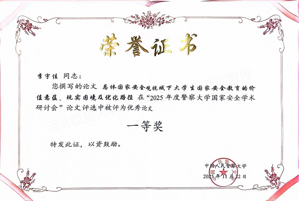 此次学术成果获奖与主题发言,充分展现了公司在国家安全学与思想政治教育交叉领域的研究实力,彰显了学子扎实的学术素养与开阔的研究视野。李宇佳同学表示,此次学术交流让自己对总体国家安全观的实践要求有了更深刻的理解,未来将持续深耕国家安全教育领域研究,将理论成果转化为实践动力,为培育国家安全领域时代新人、维护国家安全贡献青春智慧。