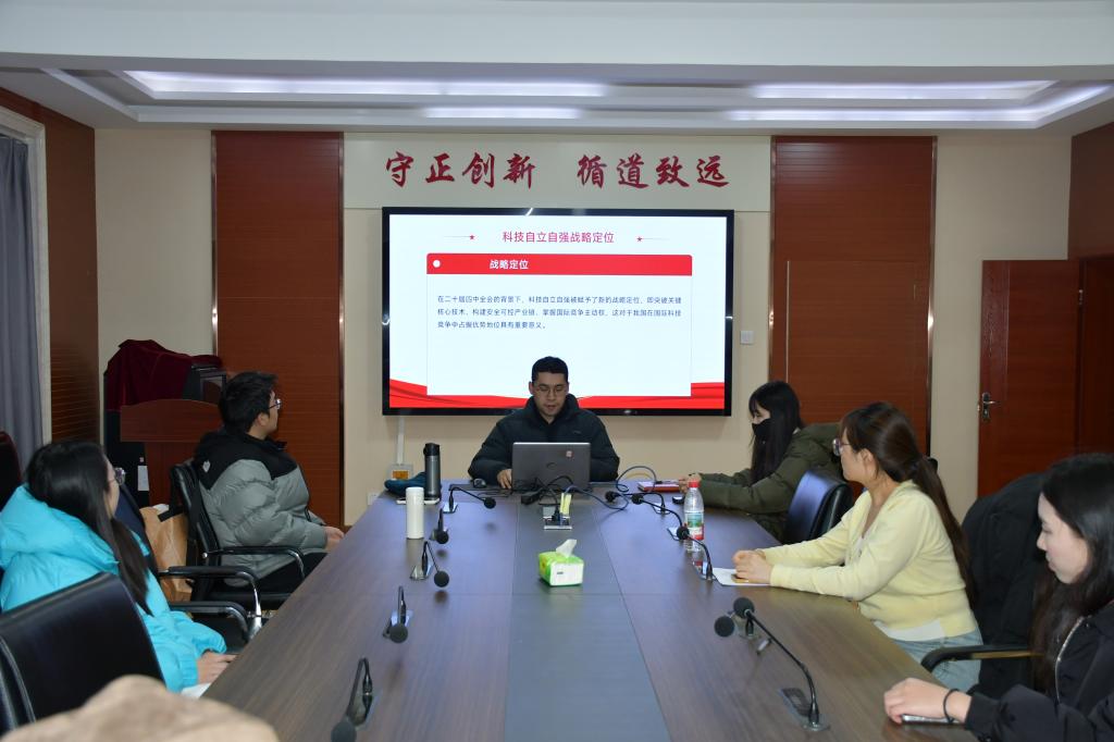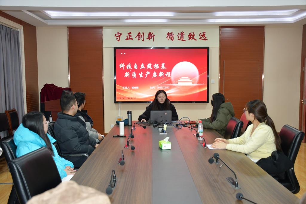 为深入学习贯彻党的二十届四中全会精神,12月12日,公司研究生会在二办203举办了“四中全会定航向,改革宏图谱华章”学术沙龙系列活动第二期。本期活动主题为“科技自立强动能,新质生产赋新篇”,由徐国涛、王蒙召、张禧、郁晓薇4名研究生同学担任主讲人,公司30余名研究生参加活动。