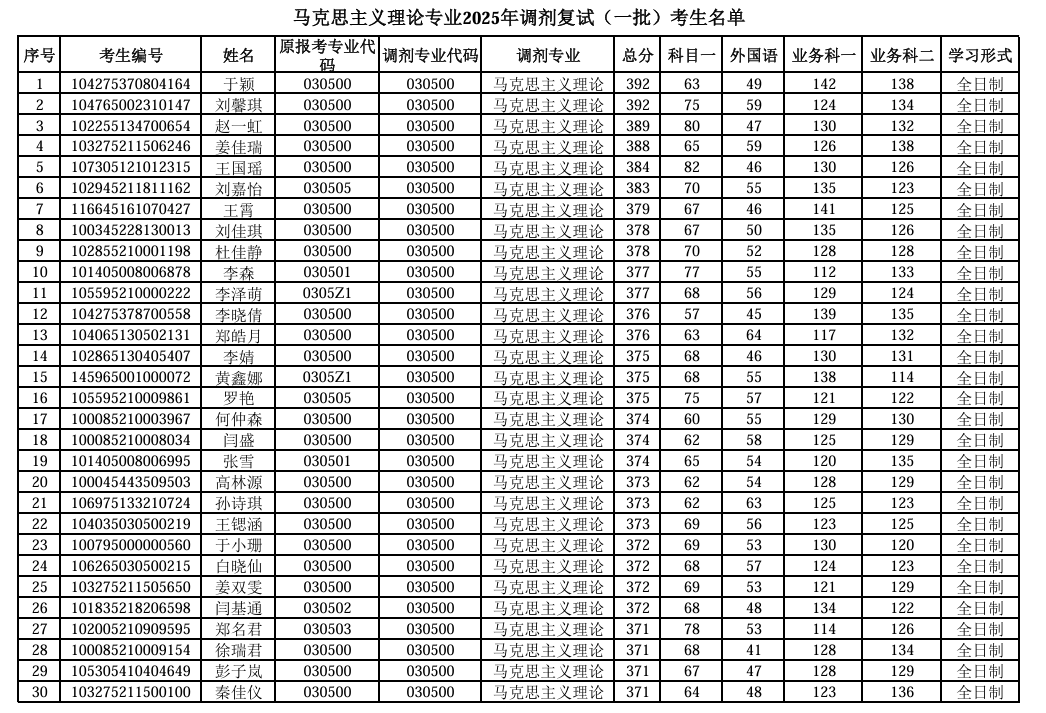 现公布公司马克思主义理论专业2025年调剂复试(一批)考生名单,详见附件。