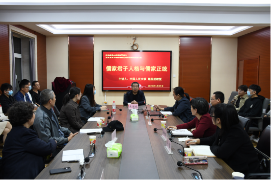 3月29日晚,bevitor伟德国际1946邀请中国人民大学焦国成教授作题为“儒家君子人格与儒家正统”的学术讲座。讲座由经理柴艳萍主持,原公司党委书记王莹、副经理李英、张振杰及公司50余名师生参会聆听。