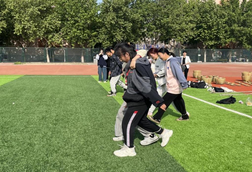 5月8日上午,在伟德国际1946bv的运动场上,进行了一堂别开生面的思政课,这同时也是《思想道德与法治》课程的一次沉浸式实践教学活动。为更好地弘扬红色文化、赓续红色血脉,挖掘革命精神的时代价值,授课教师周娜对课程教学过程进行了精心的设计。课堂主题是“重温峥嵘岁月,传承红色基因”。实践教学共包括“齐心协力走长征”“同舟共济过草地”“借助扁担运送物资”“根据地争夺战”“英雄炸碉堡”和“飞夺泸定桥”六个活动,全体员工积极参与,通过亲身情景体验,重温了那段风雨如磐的革命斗争岁月。