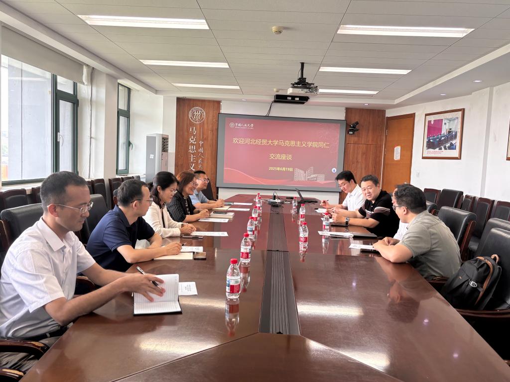 董佰壹对人大马院的热情接待表示感谢。她指出,我们要努力学习人大马院先进的教学改革和科研管理经验,加强相关资源整合,注重协同合作效应,并希望与人大马院加强合作,深化交流,增进友谊。