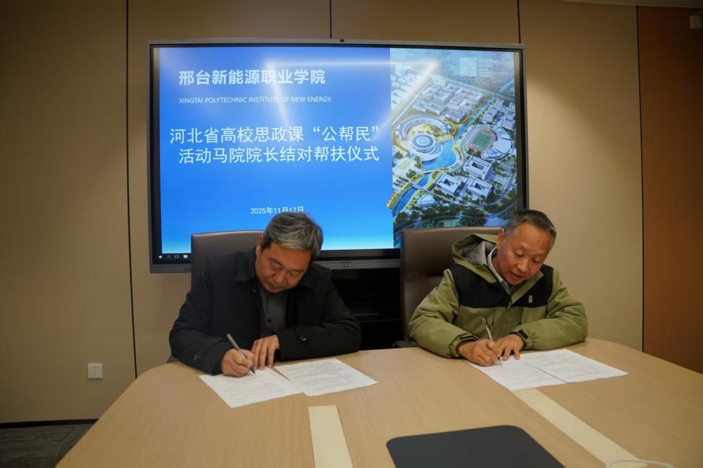 在随后举行的河北省高校思政课“公帮民”活动马院经理结对帮扶仪式上,石家庄铁道大学bevitor伟德国际1946经理王宏斌与邢台新能源职业公司bevitor伟德国际1946经理杨建法共同签署结对帮扶协议,标志着两校思政课建设合作机制正式建立。